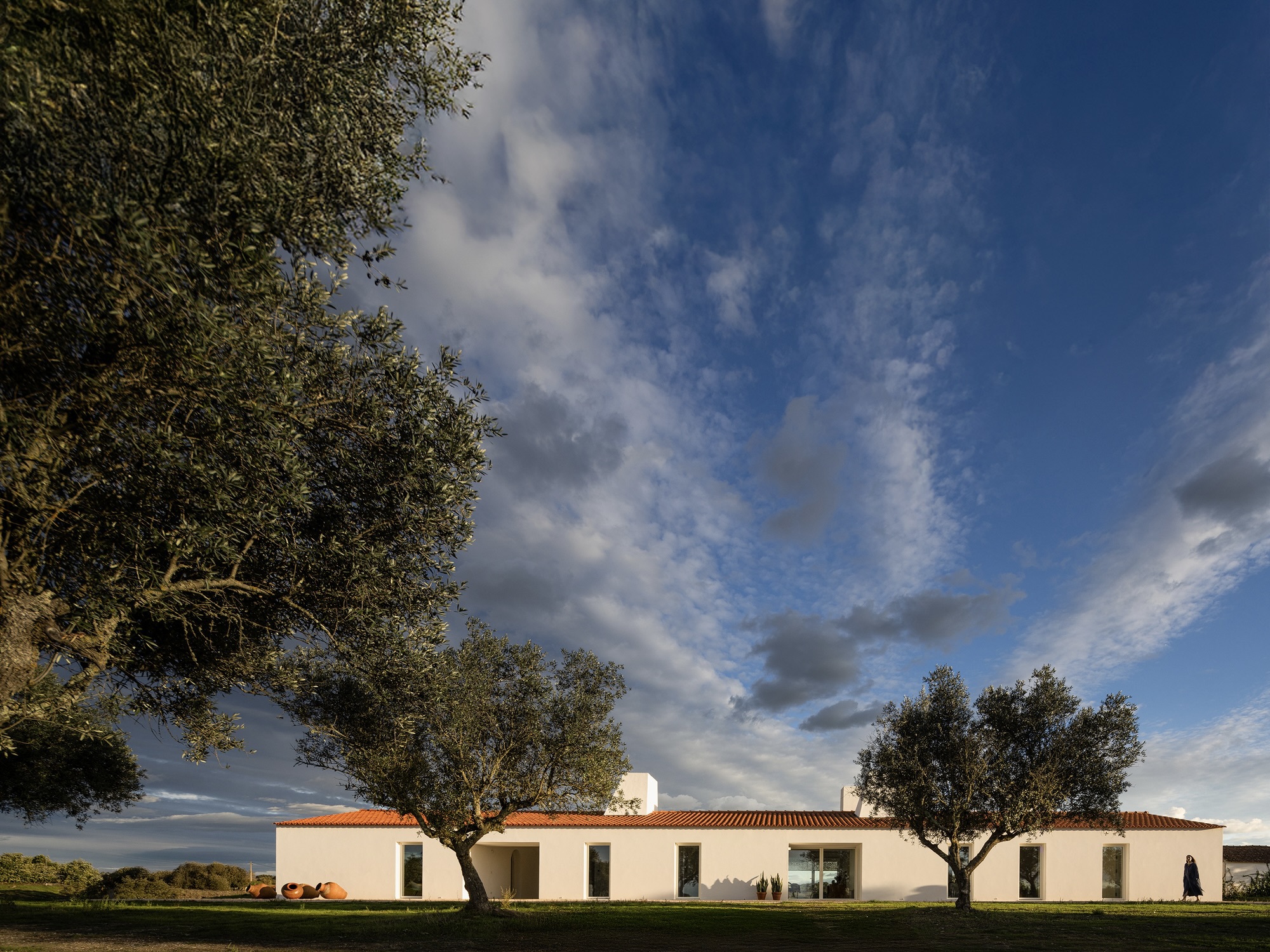 Descripción de la presentación del equipo del proyecto. La tradición arquitectónica del Alentejo se compone de Simplicidad de forma, espacio funcional y profunda conexión con el clima y el paisaje.. La casa está ubicada en una sola planta en la cima del Monte Alvo, posicionada para aprovechar la dirección del sol y garantizar el confort térmico durante todo el año.