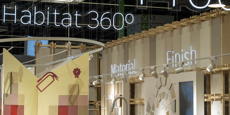 existencia presa El lema del evento es “Design as Nature”, un viaje desde las materias primas hasta el interiorismo del espacio. En este espacio se presenta el nuevo ecosistema de aplicaciones Habitat 360, que reúne toda la gama de soluciones que la compañía ofrece al mercado.