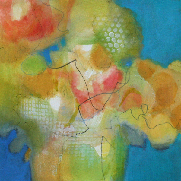 Sentí la necesidad de algo brillante ya que donde vivo hace frío y llueve. Comencé con acuarelas y luego agregué líneas con bolígrafo y veladuras acrílicas. Me inspira el trabajo de Stan Kurth y si buscas su trabajo entenderás por qué. Es un poco abstracto, pero cuando intenta engañarme para que defina la forma y pierda el misterio, me detengo. Papel acuarela 9×9