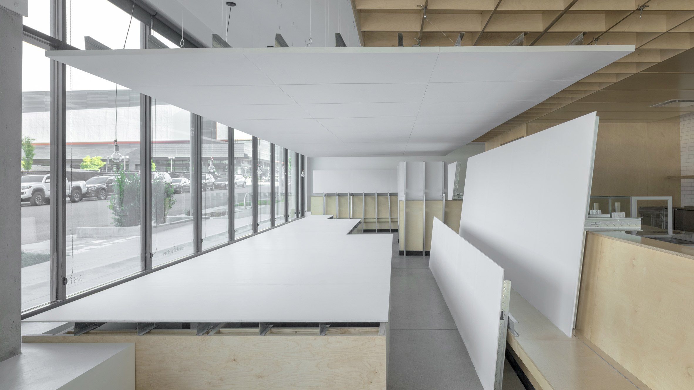 Para ello, se optó por una estrategia de «panelización», instalando placas de yeso modulares en todo el espacio y anclándolas con un sistema de soporte de acero.