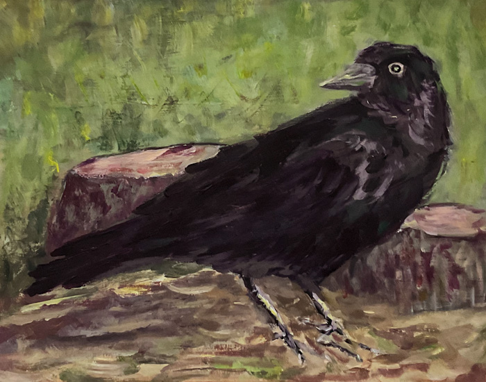 11 x 14 pulgadas… Acrílico sobre papel… alla prima… Pintado el 15 de octubre de 2025… Tomé una foto hace unos años… Solía darles de comer y me encantaba verlos apilar las galletas para poder colocarlas todas en una sola pila… Pájaros inteligentes… Tuve que dejar de alimentarlos porque aparecieron en la terraza y comenzaron a tocar la puerta de vidrio buscando sus galletas…
