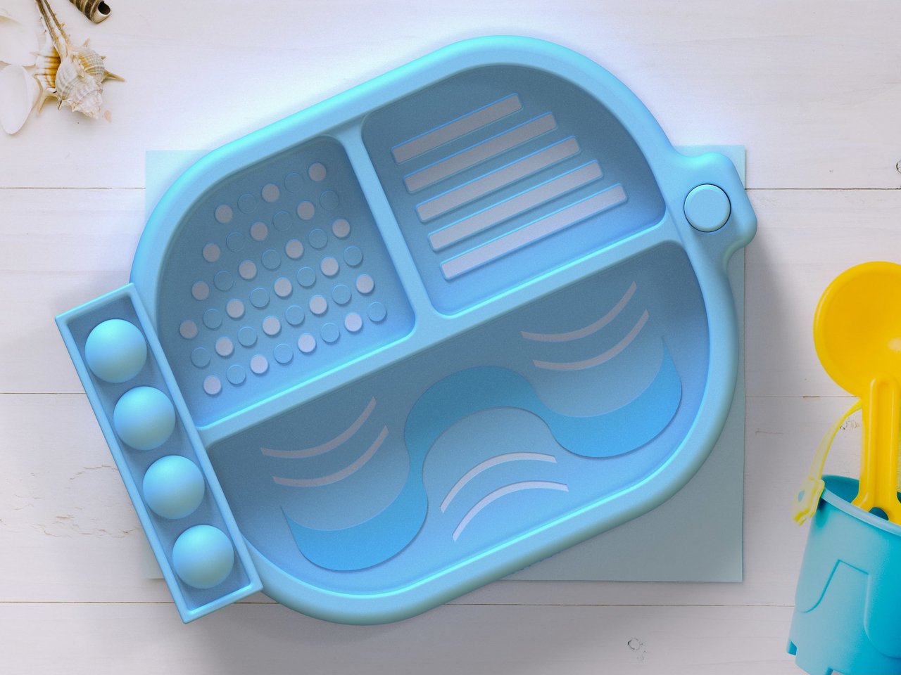 Las secciones codificadas por colores guían la interacción sin abrumar a los jóvenes con demasiadas opciones. Las texturas varían desde suaves crestas hasta suaves gradientes, lo que proporciona una experiencia táctil diferente y anima a los niños a prestar atención a cómo se siente, huele y se ve la comida. El plato se convierte en un lienzo para la exploración sensorial en lugar de un simple recipiente para la comida.