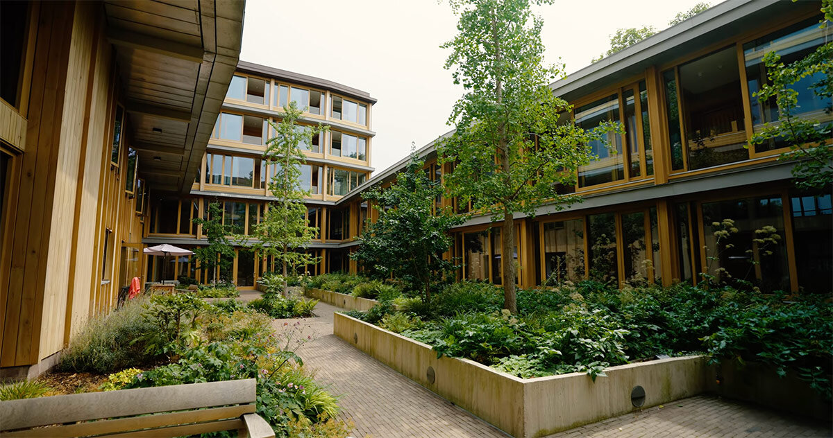 «Características como la sala de jardín de doble altura y la cocina comunitaria, donde los residentes pueden reunirse para comer y participar en una variedad de actividades grupales, mientras que los espacios compartidos más pequeños, incluido un porche de vidrio y una galería en la planta baja, que brindan a los residentes la oportunidad de conectarse y observar el bullicio diario de la calle principal, son parte integral del éxito del diseño».