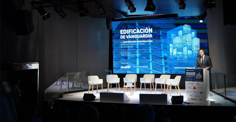 secretario general agenda urbana, vivienda y arquitectura, Iñaki Carnicerodevelado en el auditorio edificio gloria (Barcelona) Hoy «arquitectura de vanguardia»,organizador intercompañía y vanguardiaenfatizó Industrialización de la vivienda Como motor de innovación, desarrollo sostenible y cohesión social.