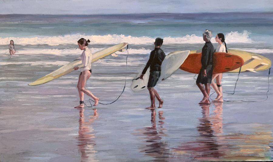 La inspiración para esto fue que vi muchos videos de surf: mujeres en longboards. Entonces la referencia que usé fueron imágenes fijas del video.