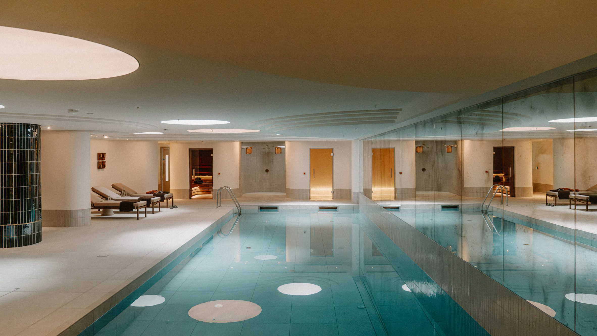 El siguiente nivel está al nivel del canal, al lado del restaurante hay una sala de cine y una suite de bienestar que incluye piscina, sauna y baño de vapor, un gimnasio totalmente equipado y una sala de fitness.