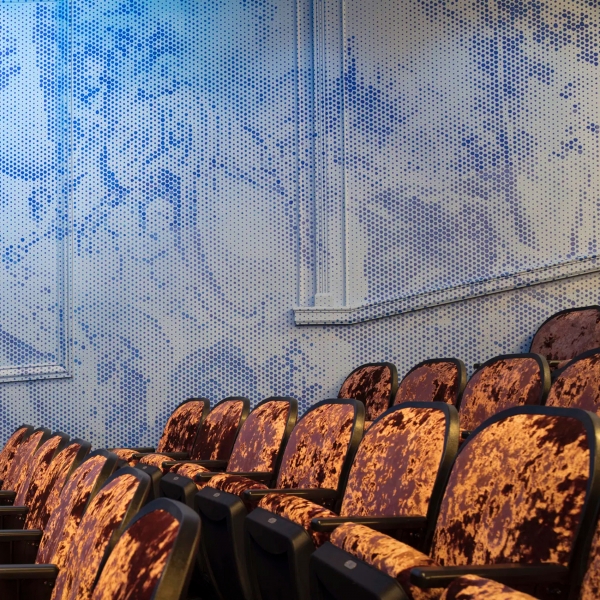 Las renovaciones interiores incluyen murales de tapices pixelados inspirados en tapices del siglo XVIII, asientos modernos, una renovación completa del vestíbulo y un exterior restaurado.