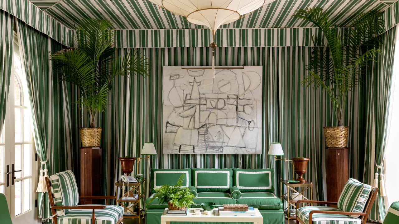 DuVäl Reynolds de Virginia en el segundo dormitorio Diseño Duval Presentamos por primera vez papeles pintados en colaboración con Paul Montgomery: tonos suaves y románticos que representan un paisaje europeo pintoresco y etéreo. Directorio AD PRO El diseñador dijo que su objetivo era «evocar una sensación de nostalgia nostálgica, como si Alicia hubiera renunciado al País de las Maravillas, hubiera crecido y hubiera construido una vida en el mundo real». Otros momentos de fantasía incluyen Atlanta. Maestros de ForbesEncantador salón junto a la piscina donde los revestimientos de paredes de plantas metálicas complementan la tapicería con flecos y las mantas de piel.