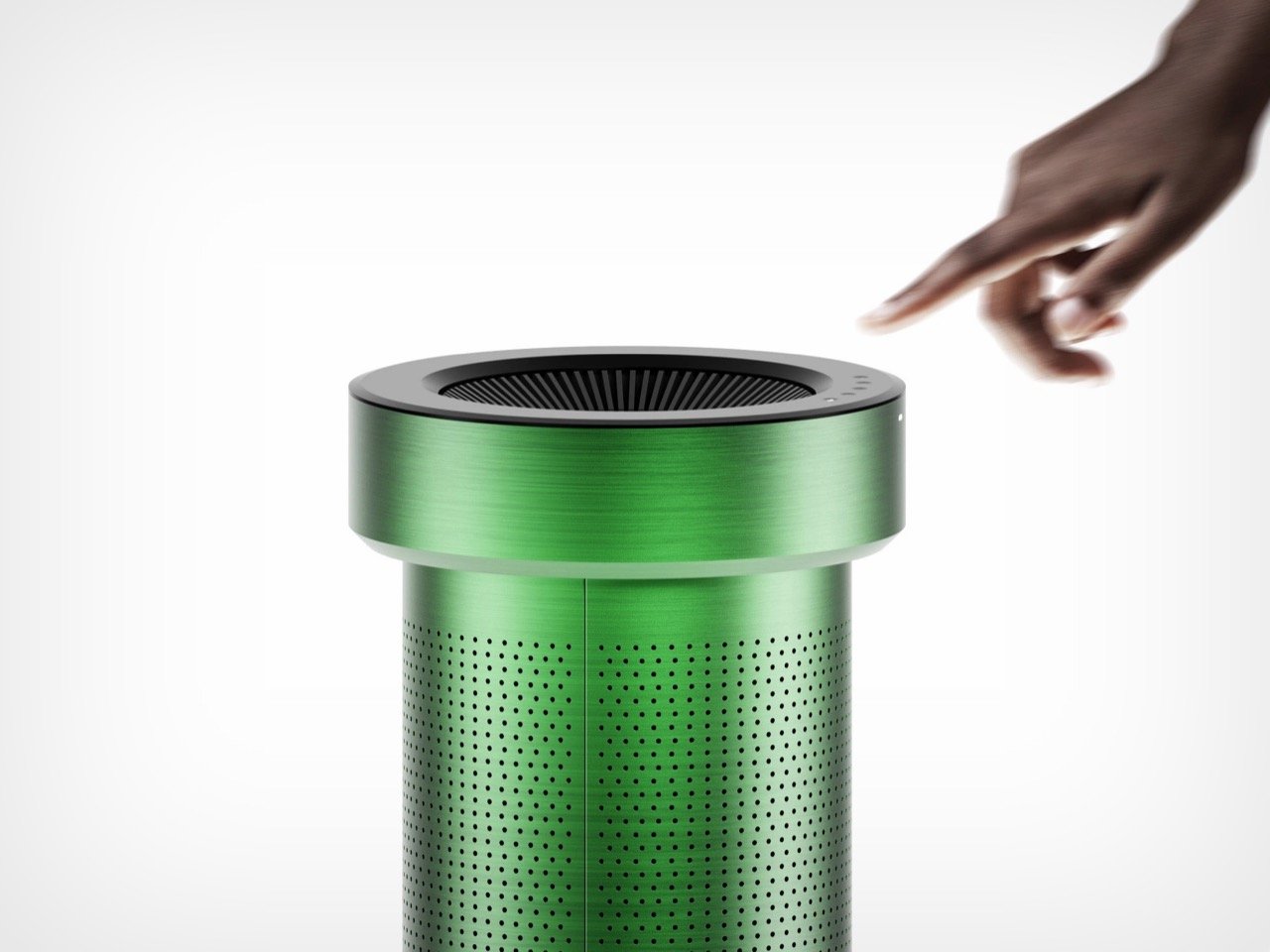 El formulario es muy sencillo. El cuerpo cilíndrico está envuelto con perforaciones de precisión para la entrada de aire, rematado por una tapa más ancha que alberga las salidas y los controles táctiles. El acabado verde es un verde metálico vibrante en un tono distintivo de Mario, aunque también lo ofrecen en aluminio cepillado si quieres que esta referencia sea un poco menos obvia para tus invitados. Los piercings tampoco son sólo decorativos. Están colocados estratégicamente por toda la superficie para maximizar el flujo de aire hacia el filtro HEPA escondido en su interior, que se encarga de eliminar las partículas del aire. El aire entra a través de estos orificios, pasa a través del filtro y sale hacia arriba a través de los orificios de enfriamiento en la cubierta superior.