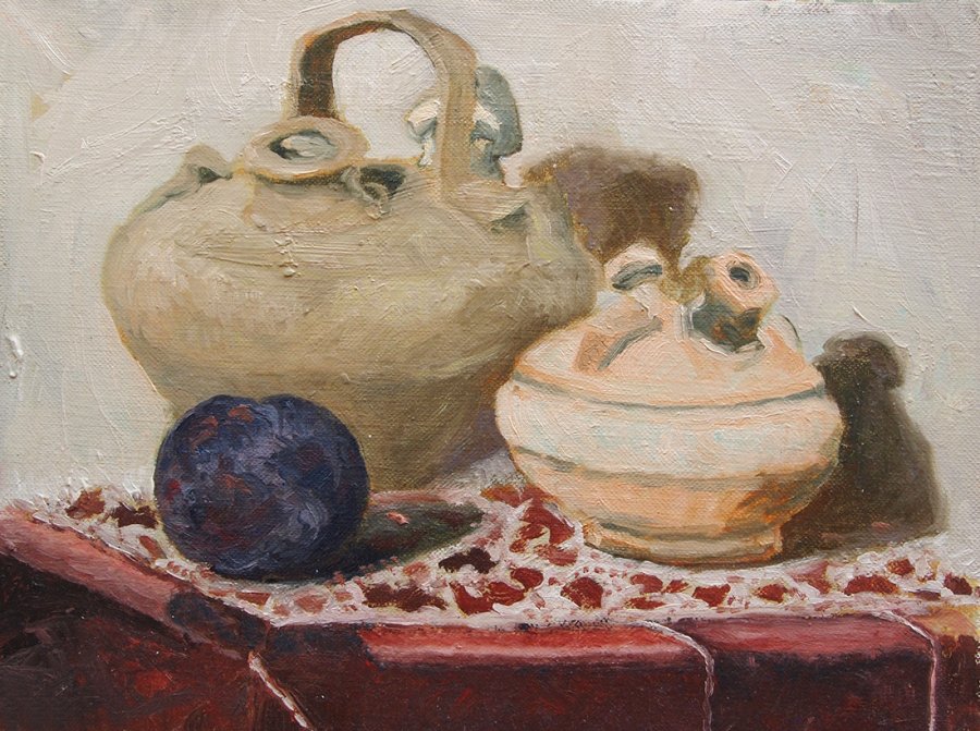 Hacía demasiado calor en el jardín, así que empaqué mis cosas y trabajé un poco más adentro. Pintura al óleo sobre lienzo.