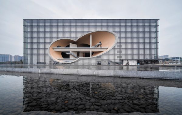 Su forma se deriva de dos curvas entrelazadas que se elevan hasta el techo. Estas curvas descansan contra un conjunto de altos pilares de bambú, Encuadre las vistas del paisaje circundante y arraigue la estructura en la tierra. El bambú, con sus cualidades fuertes, flexibles y ligeras, hace posibles estas formas orgánicas.