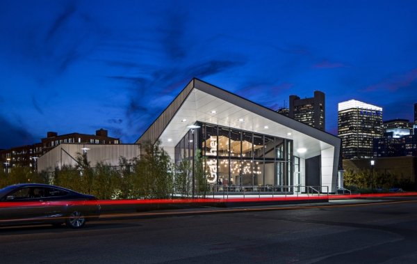 El proyecto de una sola planta presenta cafeterías, espacios flexibles y áreas de reunión en una forma transparente de estilo industrial en Harbour Square.
