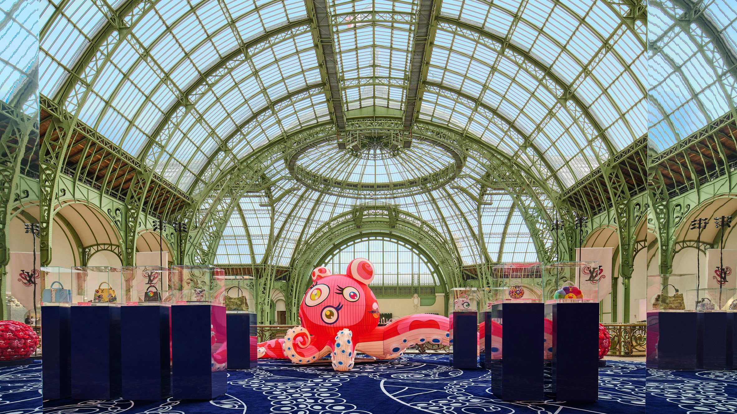 artista Murakami Takashi y marcas de moda Luis Vuitton creó un pulpo inflable gigante inspirado en las linternas chinas, que se instaló en El recientemente restaurado Museo del Gran Palacio Justo a tiempo para Art Basel en París.