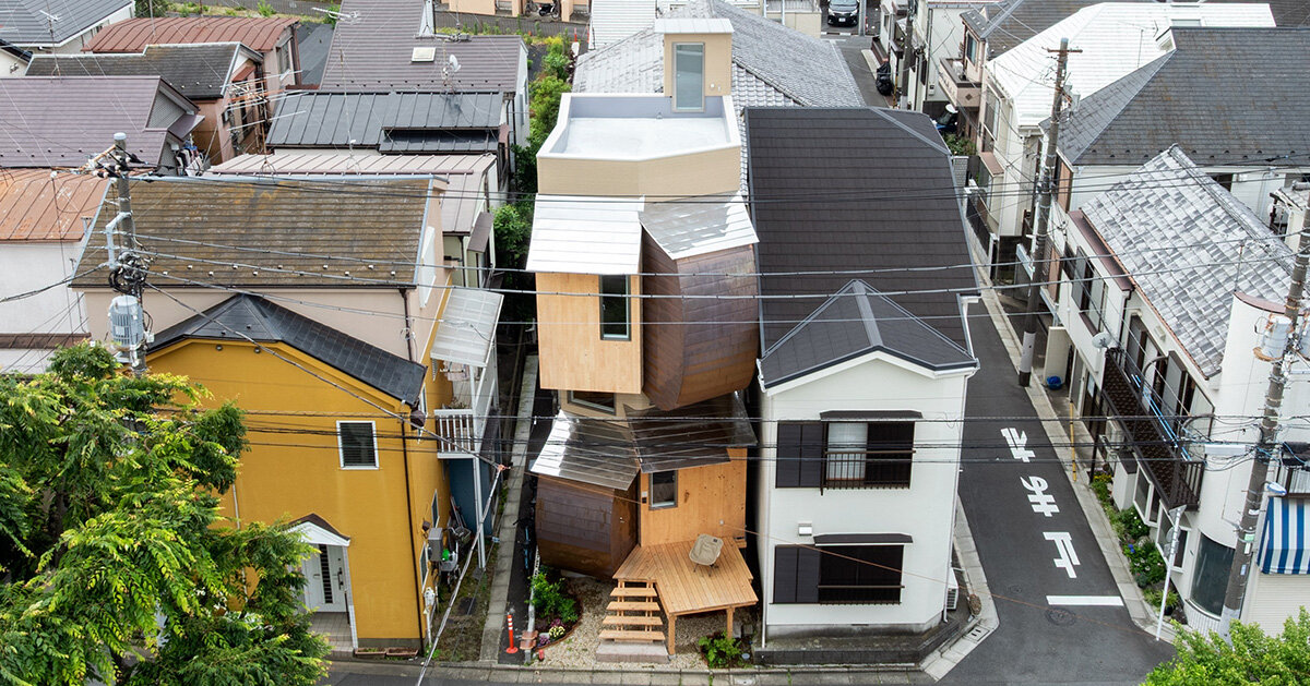 Invernadero de Shin Aoki and Partners Tokio Nerima es un lugar compacto y natural. Residencial Apartado de la calle, un tranquilo jardín y una terraza desembocan en el área pública plantada más allá. el edificio se compone de suaves formas tridimensionales que se proyectan y retroceden, revestidas de cálidos madera Con el tiempo, el tono del cobre se hará más profundo. Estos materiales naturales fueron elegidos por su capacidad de envejecer con gracia, lo que permite frente El diseño de la casa evoluciona con el paso de las estaciones. Vistos desde la calle, los volúmenes en capas se asemejan a una composición de conchas o troncos de árboles, lo que sugiere un intercambio tranquilo con las líneas fluidas de la vegetación circundante.