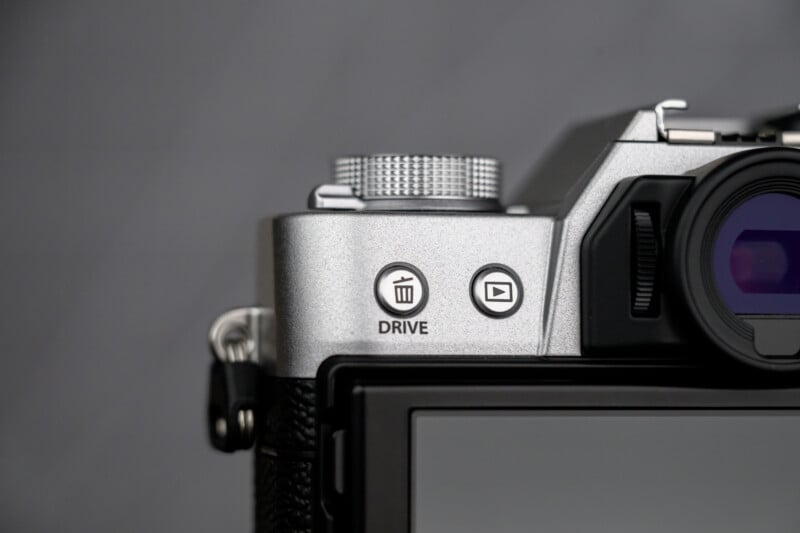 Hay algunos cambios en los controles. El botón de eliminación vuelve a actuar como un botón de conducción, proporcionando acceso a diferentes velocidades de ráfaga y modos de vídeo de la cámara. El dial en la esquina superior izquierda es ahora un dial de simulación de película, muy similar a lo que vimos en las cámaras X-E5 y X-T50. Esto le brinda un modo de simulación bloqueado, configuraciones personalizadas y tres recetas de películas totalmente personalizables que se pueden guardar.