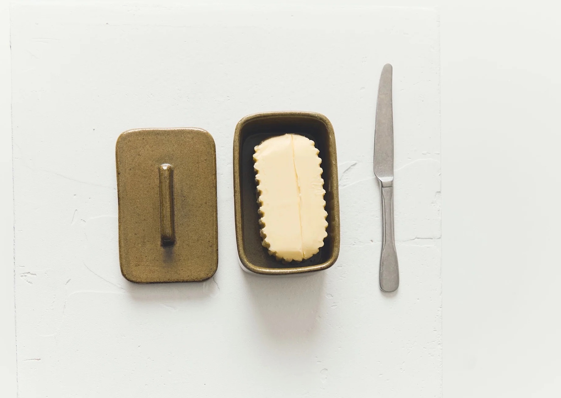 Arriba: querrás disfrutar de este hermoso plato de mantequilla (diseño australiano, elaborado en Camboya) en la mesa para el desayuno. Compre ya.