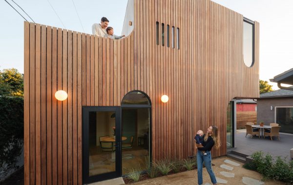 Descripción de la presentación del equipo del proyecto. El terreno suele estar ubicado en una zona residencial. La estrategia de ejecución consistió en que el volumen edificable abarcara todo el frente de la parcela, con medianeras de este a oeste, liberando un gran patio central como núcleo organizador de la vida social. La casa establece una relación interna controlada con la calle, al tiempo que se abre ampliamente hacia el patio trasero, aprovechando la orientación norte y facilitando una transición gradual entre el ámbito urbano y doméstico.
