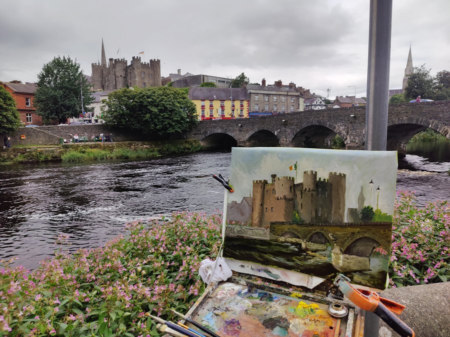 Enniscorthy – Loch Garman, óleo belga sobre lino, 35×45 cm (aprox. 14×18 pulgadas)