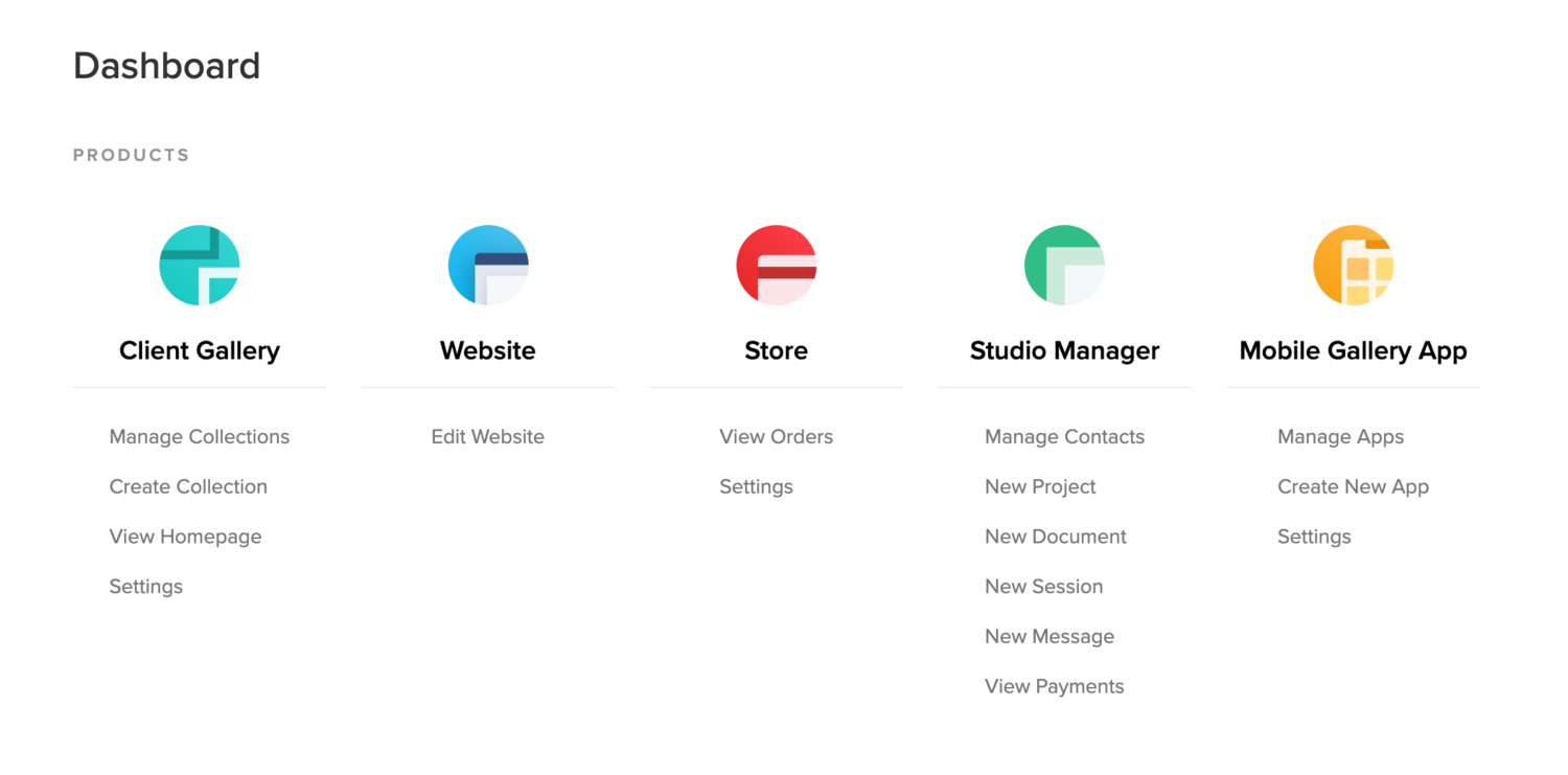 Funciones proporcionadas por Pixieset Studio Manager