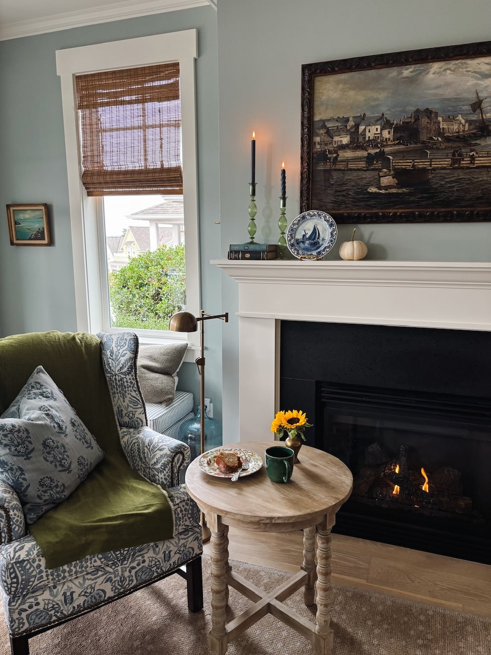 Últimamente me encanta darle un toque de verde a mi casa. Siempre ha sido uno de mis colores favoritos, pero no lo he usado mucho en mis dos casas anteriores. Es un hermoso color que realza el contraste con nuestros azules y neutros. Tenemos mucho verde afuera de nuestras ventanas, así que me encanta cómo trae el exterior hacia adentro y hace que todo se sienta tan tranquilo y cohesivo.
