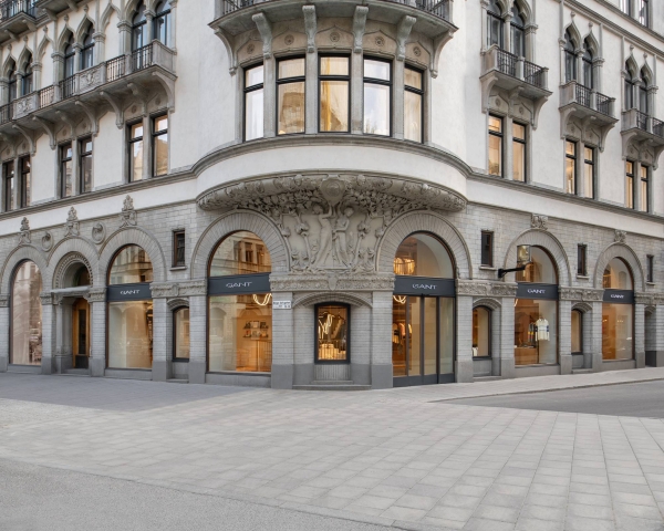 La fachada histórica original y los escaparates permanecen intactos, preservando el patrimonio exterior. Ubicado en la planta baja, GANT Estocolmo ofrece un entorno flexible para eventos y exposiciones creativos.