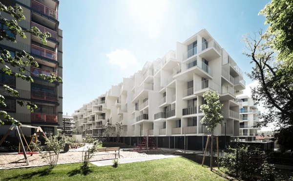 pEN 76 Ensemble es un desarrollo residencial y comercial de 468,600 pies cuadrados en Viena, Austria, que ocupa el antiguo sitio de Siemens Gründe y crea un tranquilo patio con jardín sobre la ciudad.