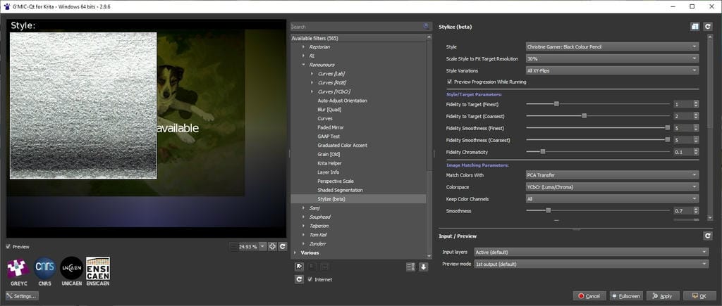 Contribuí con algunas texturas hechas a mano a lápiz, carboncillo y pastel. G’MIC Se utiliza para filtros de estilo artístico. Puedes descargar un paquete de texturas adicional y usarlo con el filtro. aquí.
