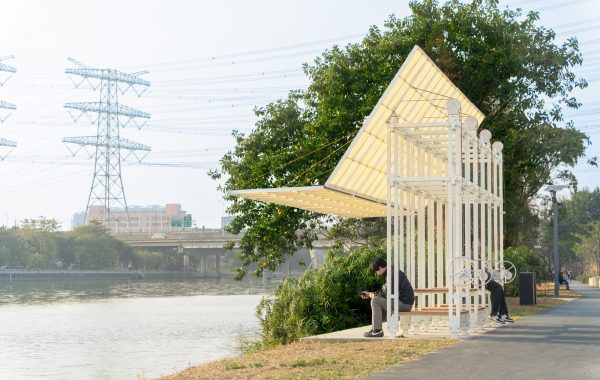 Abriendo un espacio diáfano de 10 x 15 metros, una gran cubierta cubre todo el conjunto, formada por una retícula de pérgolas enmarcadas por una celosía de madera que permite la entrada de una suave luz de forma continua durante el día. Algunos volúmenes, como el sótano, el bar y la cocina abierta, actúan como elementos estructurales que lo sostienen, proyectando sombras ideales sobre el exterior cubierto.
