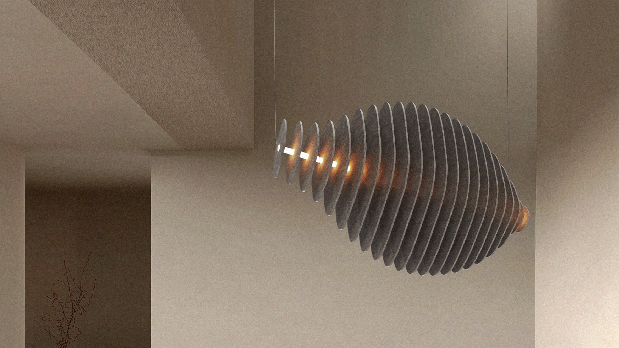 Sala de exposición Dezeen: marca rumana muebles asgia una serie de acústico colgante lámpara imitando la apariencia vida marina.