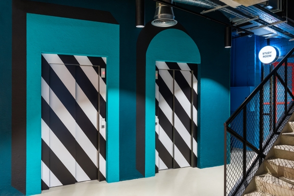 En lugar de demoler, el equipo de Masquespacio conservó la estructura estructural, la fachada y los muros centrales de mampostería, insertando nueva infraestructura, sistemas de mobiliario y capas espaciales codificadas por colores dentro de la antigua envoltura.