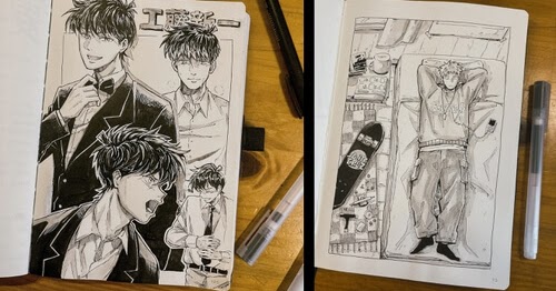 historietasDibujo de cuaderno de bocetos de estilo, tradicionalmente dibujado con tinta.