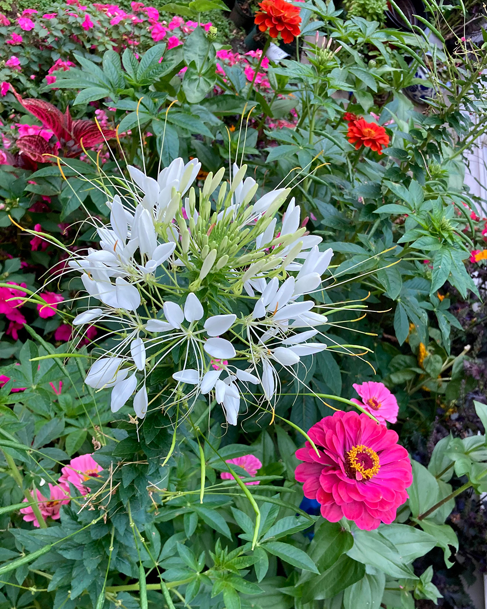 Una flor de araña blanca (cleome spp., zonas 9-11 o anuales) ciertamente hace honor a su nombre, mostrando espectaculares flores delgadas.