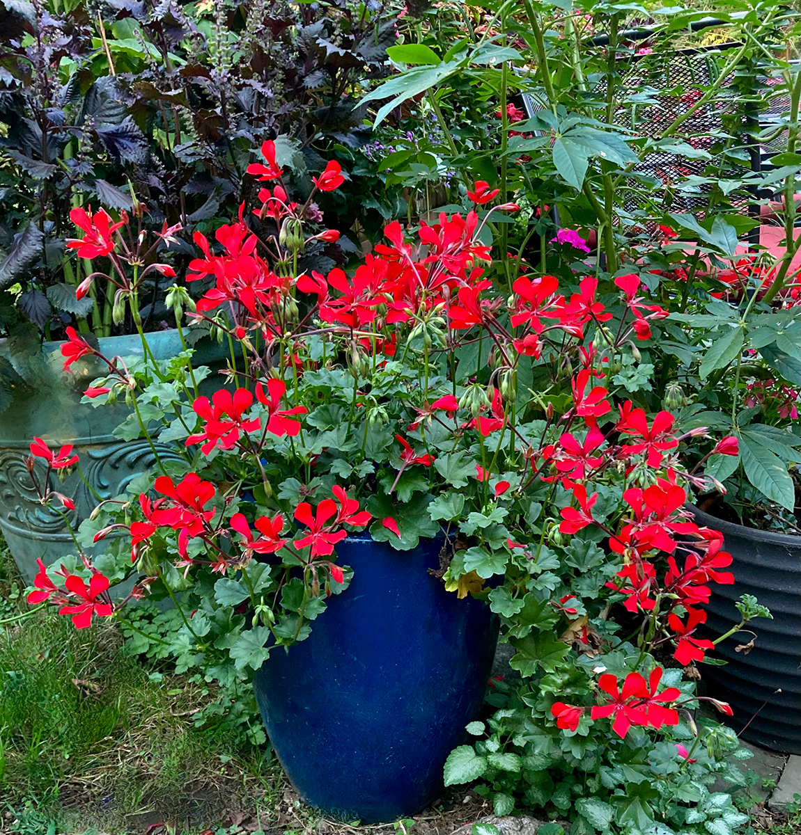 Cada una de las plantaciones de Heidi parece ser un gran éxito. Este geranio de hiedra roja (Geranio siendo arrojadozonas 10-11 o anual) se derraman directamente del contenedor y están cubiertos de flores llamativas.