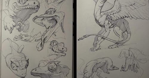 Criatura del cuaderno de bocetos en pintura con tinta.