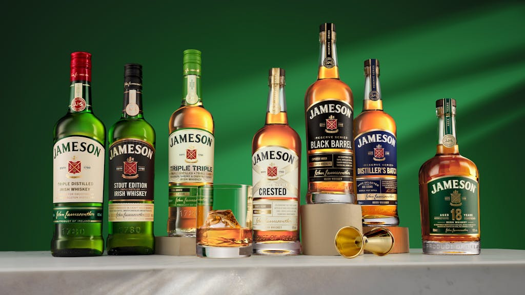 Fundado en 1780, Jameson es el whisky irlandés más vendido del mundo. Con el tiempo, su botella verde, su logotipo y su insignia se han vuelto icónicos y su herencia es profunda.