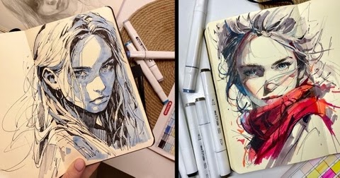 lápices de colores, grafito, marca y los bolígrafos de tinta desempeñan un papel importante a la hora de ayudar al artista a construir estos fantásticos retratos.