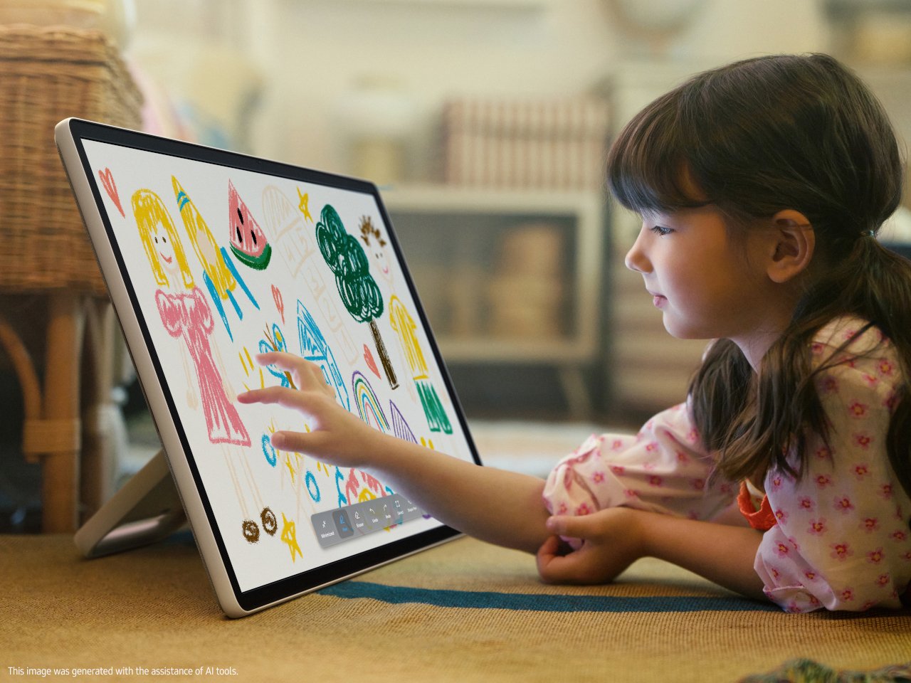 La serie Movingstyle de Samsung crea pantallas diseñadas para seguirte en lugar de quedarse quietas. Tanto la pantalla táctil de 27 pulgadas como el monitor M7 de 32 pulgadas se desplazan sobre soportes, con ruedas ocultas debajo, por lo que moverlos entre habitaciones es sencillo. La versión más pequeña también es completamente desmontable del soporte y puede funcionar con batería durante tres horas si la transportas a través del asa integrada del soporte.