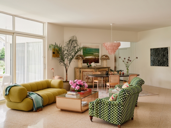 La remodelación de Mary Patton Design en 2022 de una casa Tudor de principios del siglo XX en Old Braeswood de Houston combina elementos modernos y tradicionales: paredes curvas de yeso, pisos de madera oscura, iluminación antigua enmarcada por paredes de lino neutro.