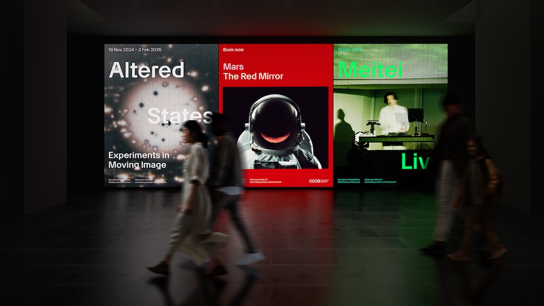 nueva identidad Incorporar este principio a un sistema vivo. Su cuadrícula variable se curva deliberadamente, permitiendo que la composición se mueva y respire mientras mantiene la coherencia. En lugar de ofrecer una simple adaptación, proporciona un lienzo dinámico para la expresión de la imaginación, haciéndose eco del papel del ArtScience Museum como espacio donde el arte y la ciencia se fusionan.