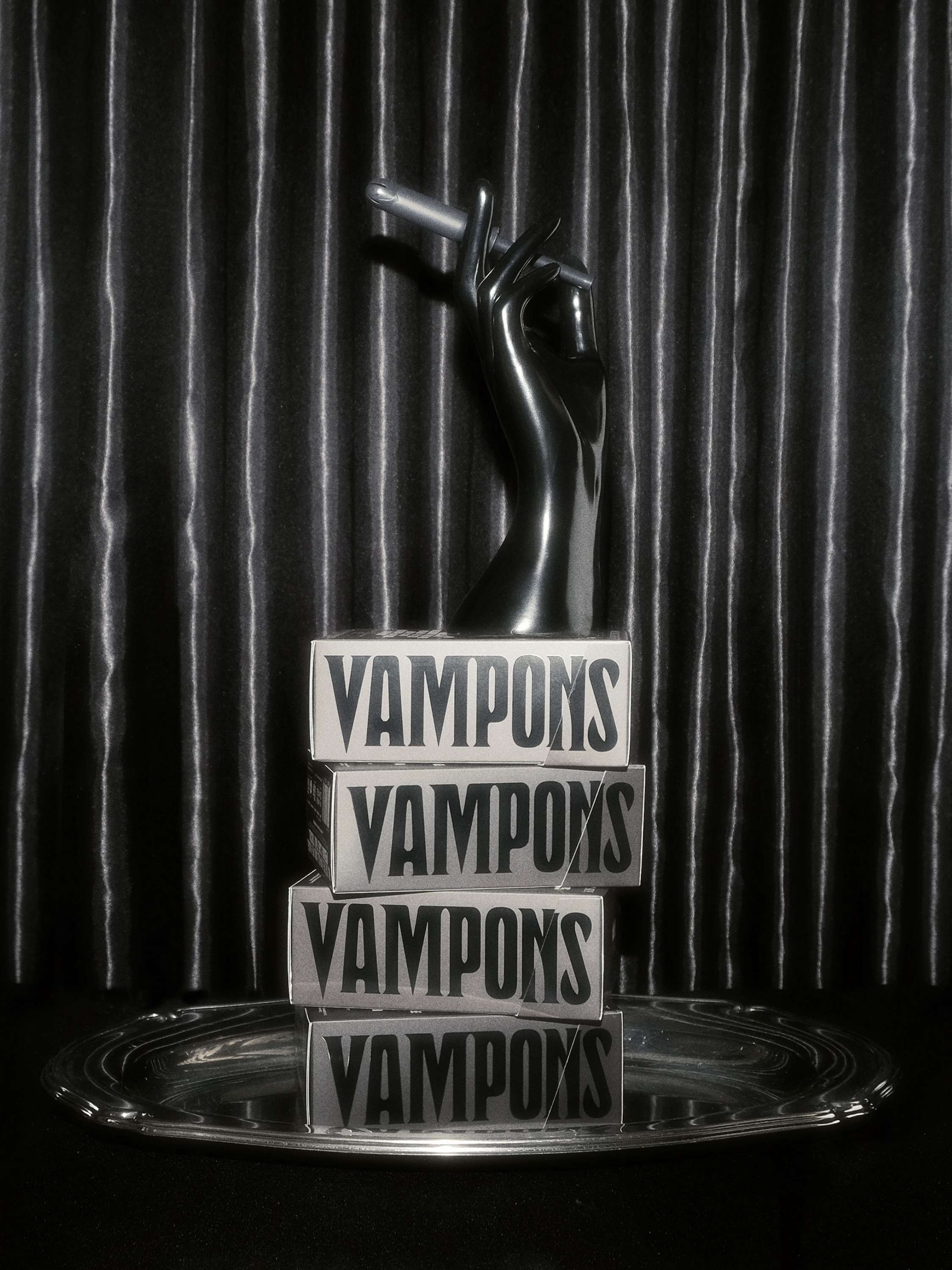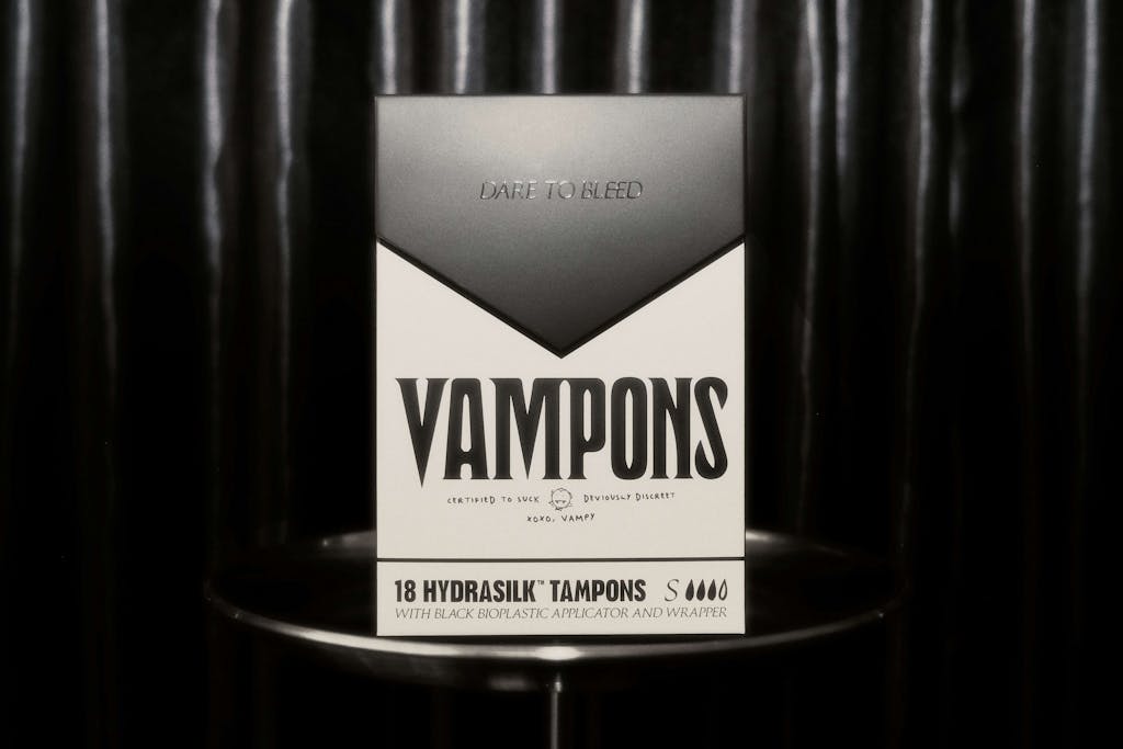Vampons es una marca de tampones creada por «vampiros artesanales» que se lanzó por primera vez en 2024 con un color rojo sangre, caja en forma de ataúd Viene con un aplicador de tampón cruzado. Es ingenioso y llamativo, pero el diseño no impulsa el crecimiento de la marca.