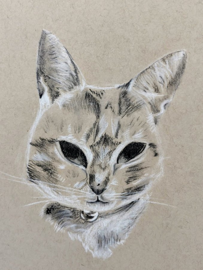 Retrato de mascota al carboncillo de mi gato.
