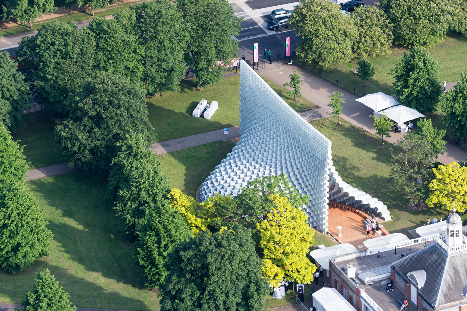 Sin embargo, cada año hay un encargo que invita a los visitantes a pensar en él como un objeto independiente: una experiencia estética independiente, algo en lo que pensar de forma aislada, como una escultura o una instalación. Este es el Serpentine Pavilion en los Jardines de Kensington de Londres, un proyecto anual de verano que invita a destacados arquitectos de todo el mundo a construir una estructura experimental temporal.