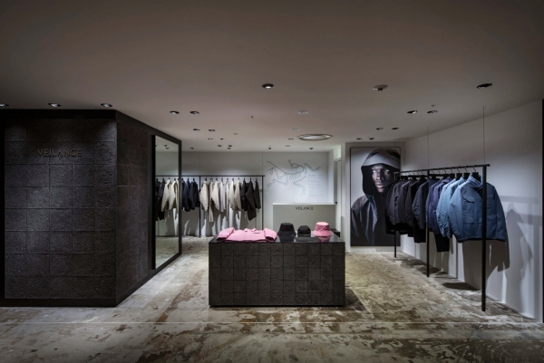 Este espacio comercial de 860 pies cuadrados es la primera tienda VEILANCE independiente en Tokio, Japón. Reutiliza residuos de hormigón de Tokio como yeso, lo que refleja un espíritu de diseño circular y una narrativa de material urbano.