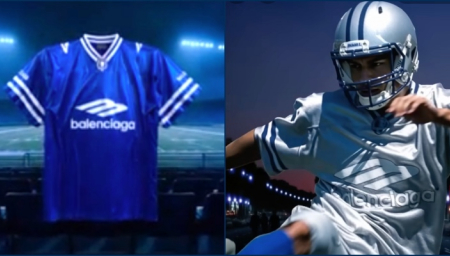 La colección de fútbol Primavera 2026 de Balenciaga reimagina el fútbol americano a través de una lente de alta costura, transformando el valor del día del partido en siluetas de gran tamaño y un drama de campaña surrealista. La colección cápsula incluye suéteres con cuello en V mate y satinado, chándales de popelina técnica, chaquetas universitarias y sudaderas con capucha de cuero esculturales, todos los cuales rinden homenaje al equipo de protección sin estar listos para el campo. La marca de equipo ficticia, que incluye nuevos escudos de leones e íconos de marca rediseñados, reemplazó las afiliaciones reales para crear una fantasía de moda inspirada en los deportes. Accesorios como gorras de diamantes y parches bordados añaden estilo arbitral y referencias a la cultura de los fanáticos. El evento cambió las normas de la pista por un escenario de césped artificial y repeticiones en cámara lenta, mezclando el espectáculo de la moda con la mitología del rugby.