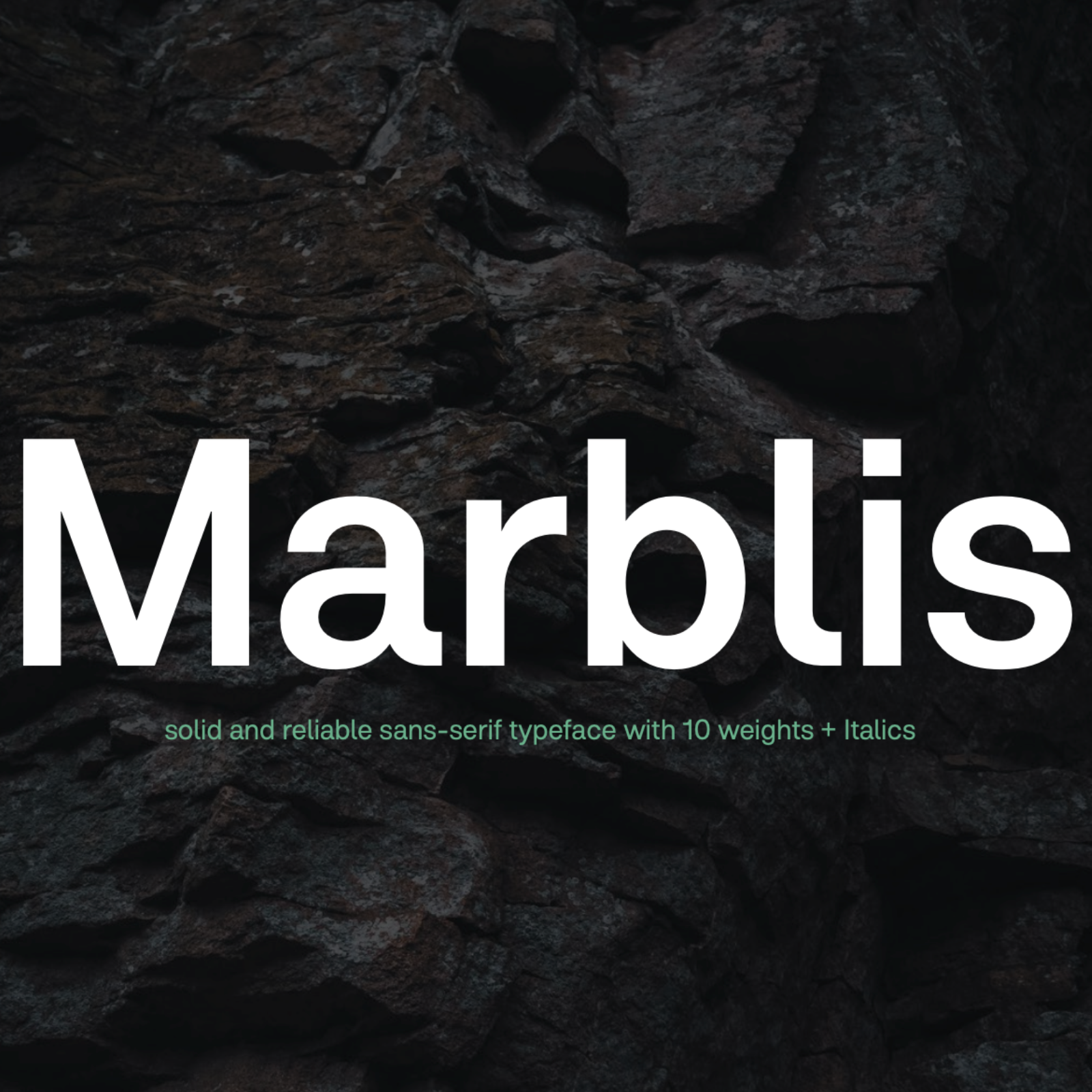 Marblis es una fuente sans serif moderna con claridad, calidez y variedad. Tiene 10 pesos y más de 1400 glifos, lo que lo convierte en una nueva opción versátil para los diseñadores.