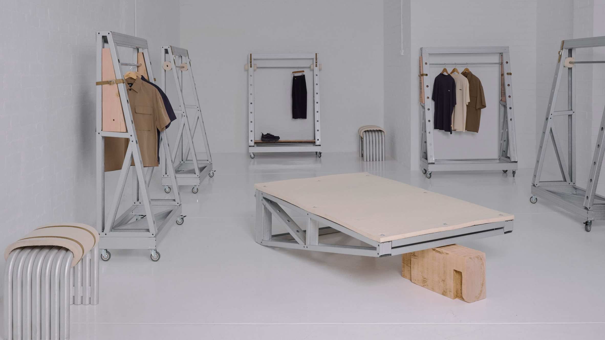Cada componente, que consta de un riel para ropa, un expositor y un asiento, está diseñado teniendo en cuenta la longevidad y la flexibilidad, lo que permite volver a ensamblarlo en múltiples iteraciones y minimizar el desperdicio.