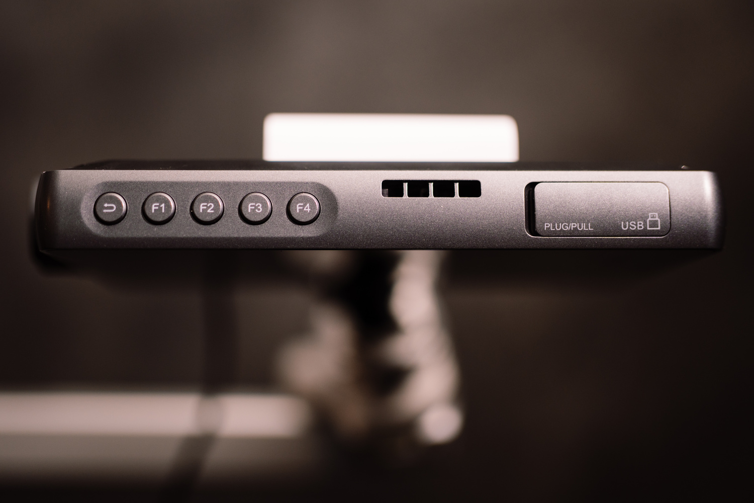 También hay un botón de retroceso y un conjunto de botones personalizables en la parte superior del dispositivo. He leído que algunos usuarios se quejan de que los botones no ofrecen suficientes opciones para programarlos, pero en mi uso encontré todo lo que encontré útil o necesario. También hay una puerta cerca de estos botones que alberga un puerto USB-A para futuras actualizaciones de firmware. Pero este puerto parece un poco desperdiciado ya que también hay un puerto USB-C en la parte inferior del monitor, que creo que podría usarse para esta función además de la opción de alimentación USB-C.