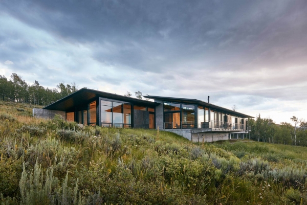 Completada en 2014 por Abramson Architects, con sede en Los Ángeles, la casa de 7,000 pies cuadrados ofrece a los propietarios un refugio en la montaña sin mantenimiento con plataformas de concreto, revestimiento de acero resistente a la intemperie y ventanas del piso al techo.