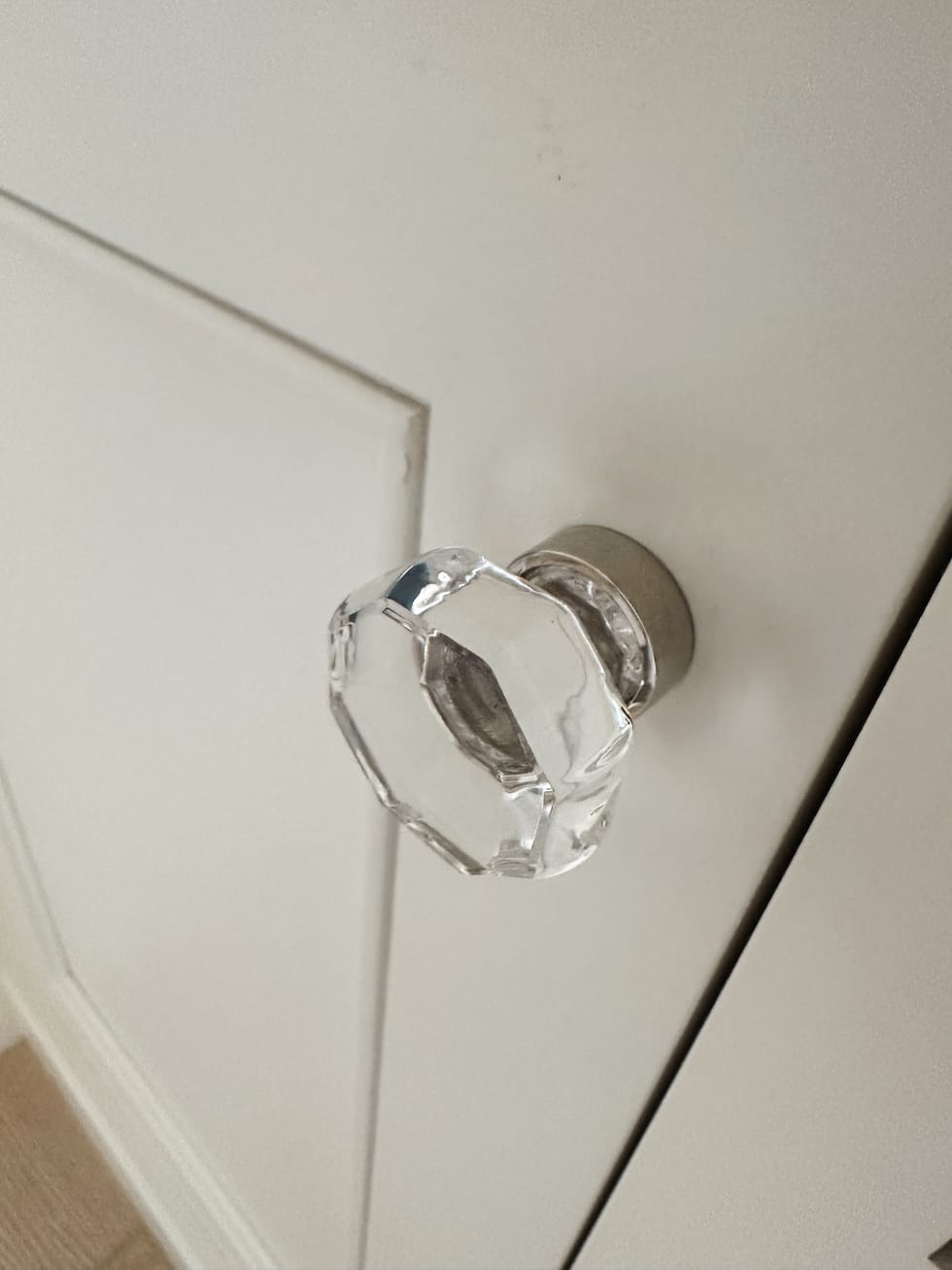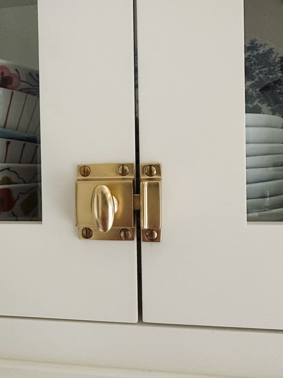 Elegimos una combinación de herrajes clásica, en su mayoría acabados de latón y níquel envejecidos y algunos pomo de cristal.