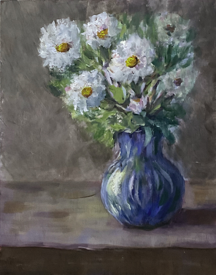 11 x 14 pulgadas… acrílico sobre papel… pintado ayer… alla prima, pero tuve múltiples interrupciones en el vidriado mientras seguía descubriendo cómo aplicar el vidriado
